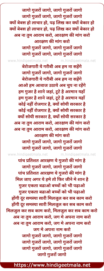 Lyrics of Jago Gujaro Jago - जागो गुजरों जागो
