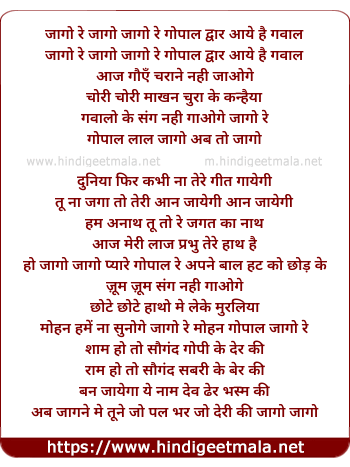 Lyrics of Jago Jago Re Gopal Dwar Aaye Hai Gawal - जागो जागो रे गोपाल द्वार आये है गवाल