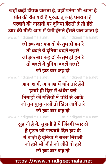 Lyrics of Jaha Kahee Dipak Jalta Hai - जहाँ कहीं दीपक जलता है