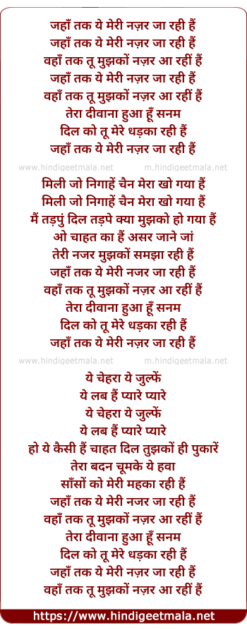 Lyrics of Jaha Tak Yeh Meri Nazar Ja Rahi Hai - जहाँ तक ये मेरी नज़र जा रही हैं