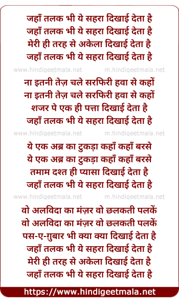 Lyrics of Jaha Talak Bhee Yeh Sahara Dikhaayee Deta Hai - जहाँ तलक भी ये सहरा दिखाई देता है