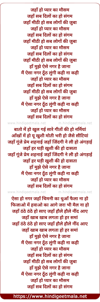Lyrics of Jahan Ho Pyaar Kaa Mausam - जहाँ हो प्यार का मौसम