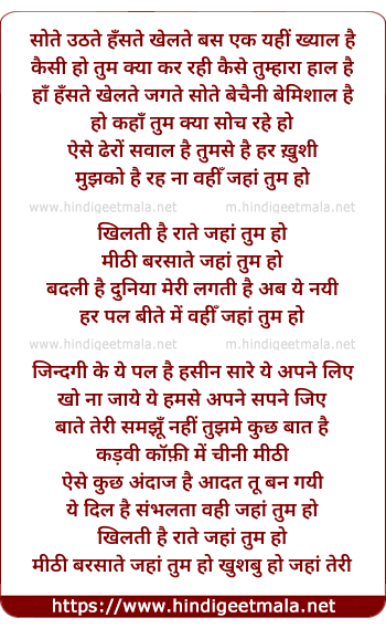 Lyrics of Jaha Tum Ho - जहां तुम हो