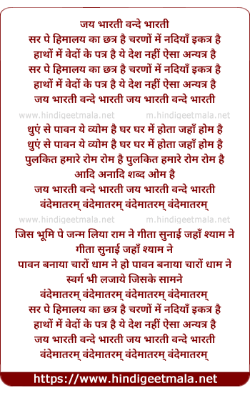 Lyrics of Jai Bharati Vande Bharati - जय भारती वन्दे भारती