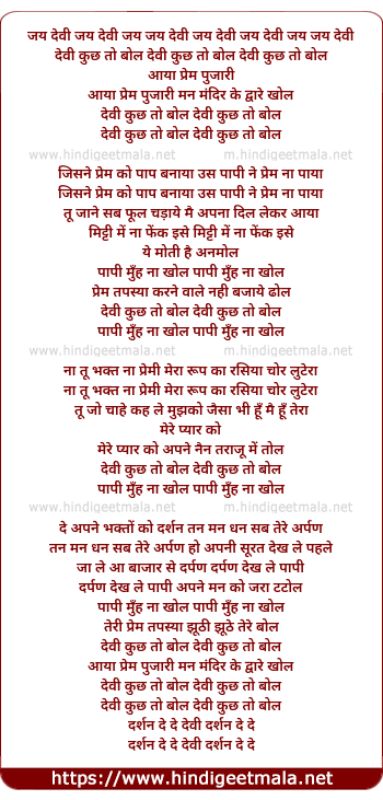 Lyrics of Jai Devi Jai, Devi Kuch To Bol - जय देवी जय, देवी कुछ तो बोल