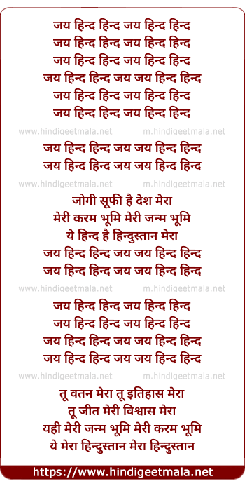 Lyrics of Jai Hind Hind, Guru Manter Meraa - जय हिन्द हिन्द, गुरु मन्तर मेरा