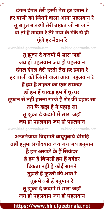 Lyrics of Jai Ho Pehlwaan - जय हो पहलवान
