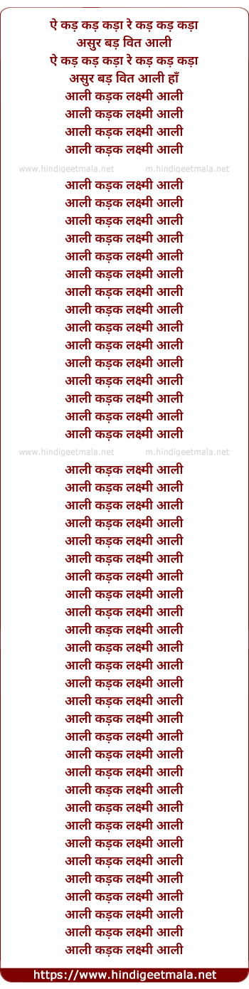 Lyrics of Jai Jai Jagdambe Kali - ऐ कड़ कड़ कड़ा रे कड़ कड़ कड़ा