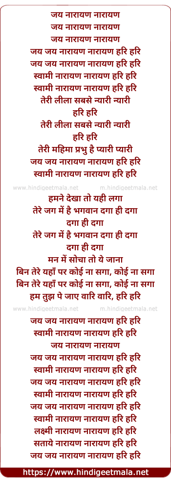 Lyrics of Jai Jai Narayan Hari Hari (Male) - जय जय नारायण हरी हरी