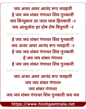 Lyrics of Jai Jai Shankar Gangadhar - जय अजर अमर आनंद रूप भयहारी