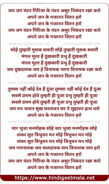 Lyrics of Jai Jai Vandan Girija Ke Nandan