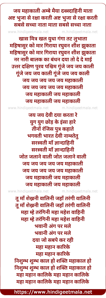 Lyrics of Jai Mahakali Jai Mahakali - जय महाकाली जय महाकाली