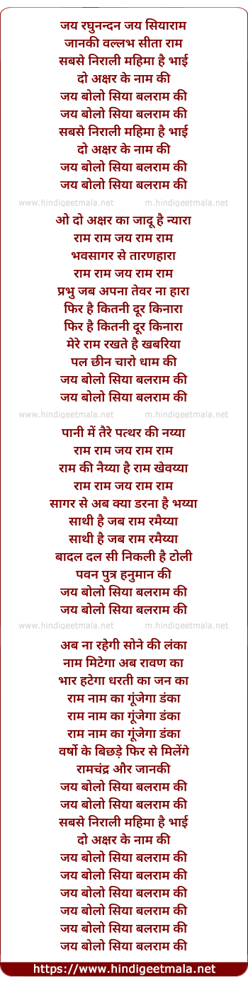 Lyrics of Jai Raghunandan Jaii - जय रघुनन्दन जय