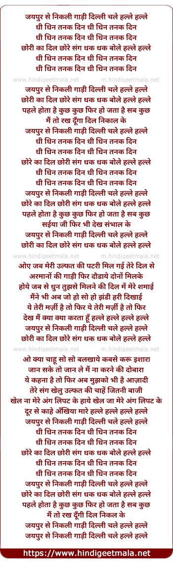 Lyrics of Jaipur Se Nikli Gadi Delhi Chale - जयपुर से निकली गाड़ी दिल्ली चले