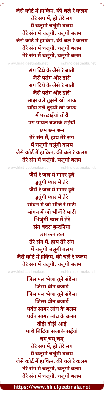 Lyrics of Jaise Court Me Hakim Ki Chale Re Kalam - जैसे कोर्ट में हाकिम की चले रे कलम