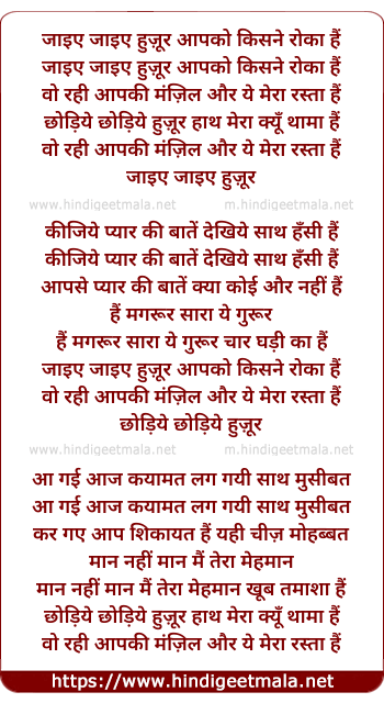 Lyrics of Jaiye Jaiye Huzur Aapko Kisne Roka Hai - जाइए जाइए हुज़ूर आपको किसने रोका हैं