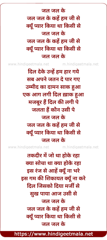 Lyrics of Jal Jal Ke Kahe Hum Ji Se - जल जल के