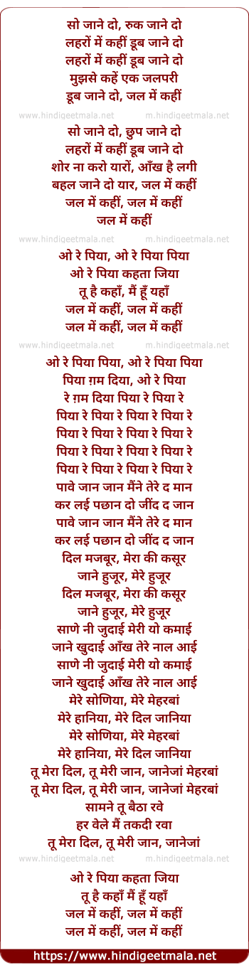 Lyrics of Jal Pari - सो जाने दो, रुक जाने दो