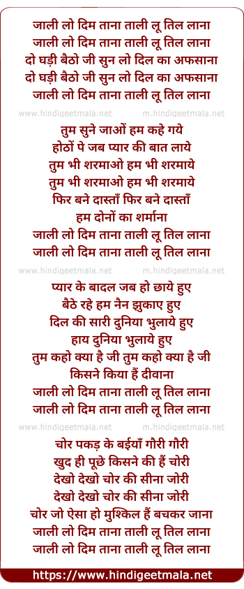 jaali lo dim tana taali lu til lana