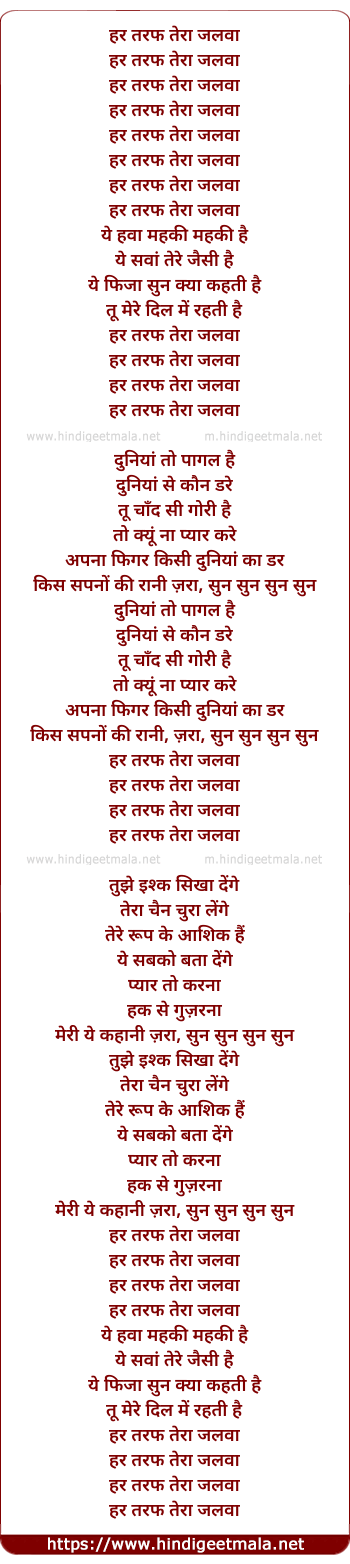 Lyrics of Jalwa (Daler Mehndi) - हर तरफ तेरा जलवा