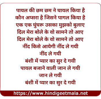 Lyrics of Payal Ki Chham Chham Ne Ghayal Kiya Hai - पायल की छम छम ने घायल किया है