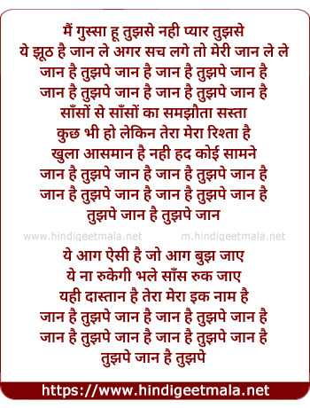 Lyrics of Jan Hain Tujhpe Jan Hain - जान है तुझपे जान है