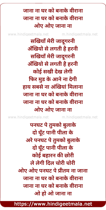 Lyrics of Jana Na Ghar Ko Banake Virana - जाना ना घर को बनाके वीराना