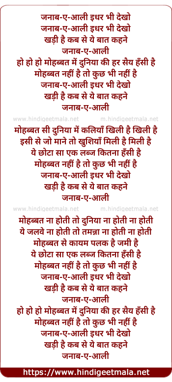 Lyrics of Janab-E-Ali Idhar Bhi Dekho - जनाब-ए-आली इधर भी देखो