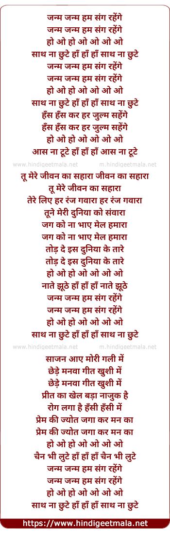 Lyrics of Janam Janam Hum Sang Rahenge - जन्म जन्म हम संग रहेंगे