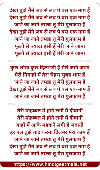 Lyrics of Jane Ja Jane Tamanna Tu Meri Gulfam Hai - जाने जा जाने तमन्ना तू मेरी गुलफाम हैं