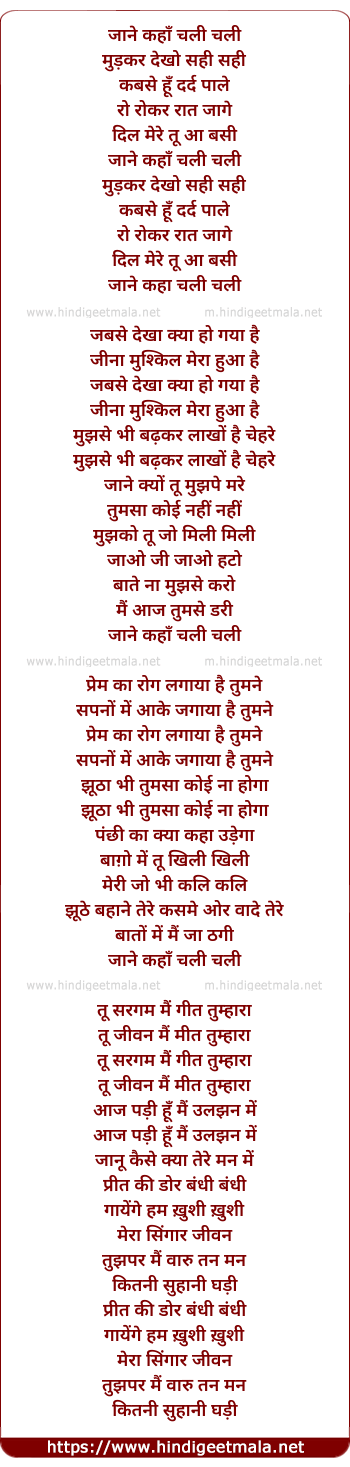 Lyrics of Jane Kaha Chali - जाने कहाँ चली