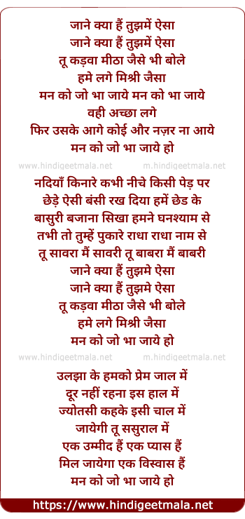 Lyrics of Jane Kya Hai Tujhme Aisa - जाने क्या हैं तुझमें ऐसा