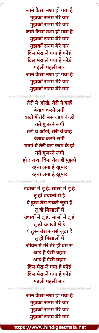 Lyrics of Jane Ye Kaisa Nasha - जाने कैसा नशा हो गया है