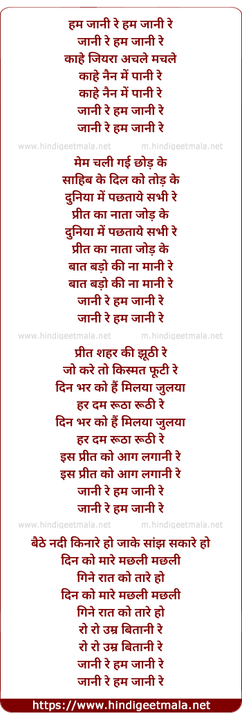 Lyrics of Jani Re Hum Jaani Re - हम जानी रे हम जानी रे