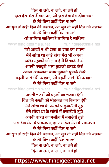 Lyrics of Jara Dekh Mera Diwanapan - ज़रा देख मेरा दीवानापन