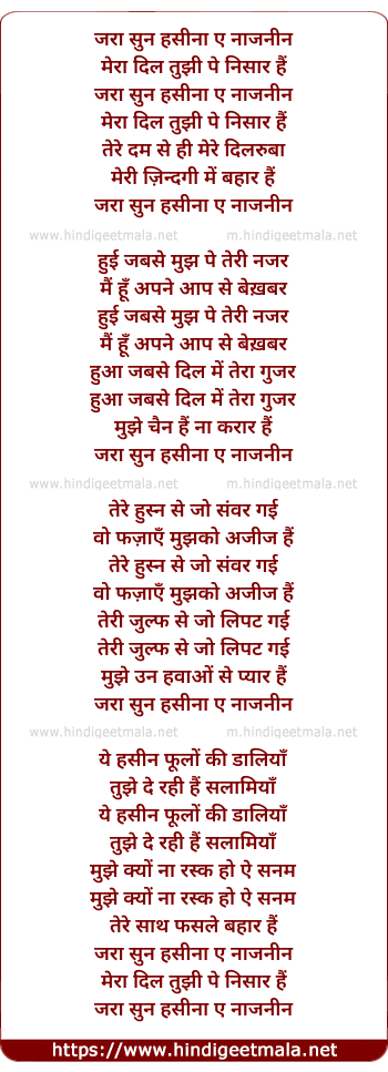 Lyrics of Jara Sun Hasina Ai Najanin - जरा सुन हसीना ए नाजनीन
