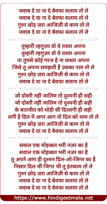 Lyrics of Jawaab De Ya Na De - जवाब दे या ना दे
