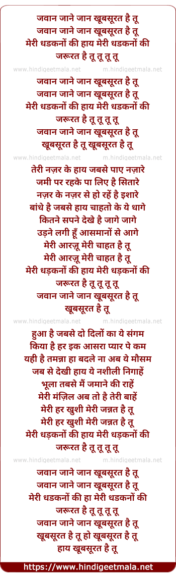 Lyrics of Jawaan Jaane Jan, Khubsurat Hai Tu - जवान जाने जान, खूबसूरत है तू