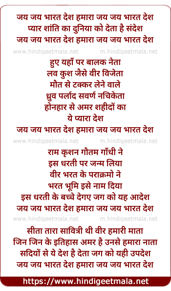 Lyrics of Jai Jai Bharat Desh Hamara - जय जय भारत देश हमारा