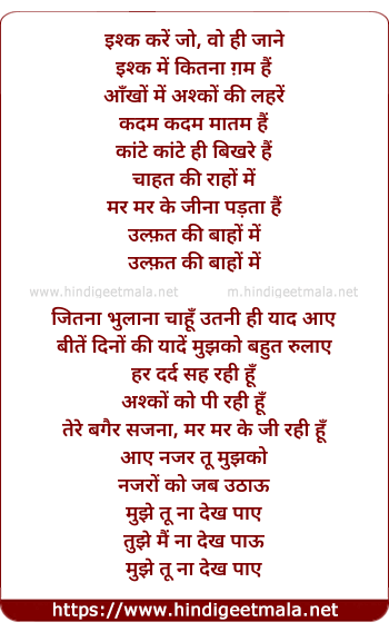 Poetic Translation - Lyrics of Jee Chahata Hai Tera (Sad) - इश्क करें जो, वो ही जाने
