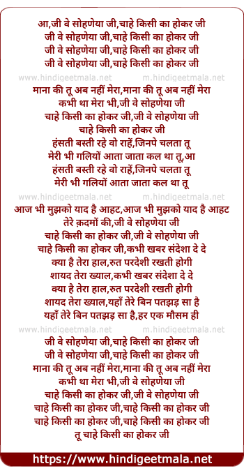 aa jee ve sohneya jee chaahe kisi ka hokar jee