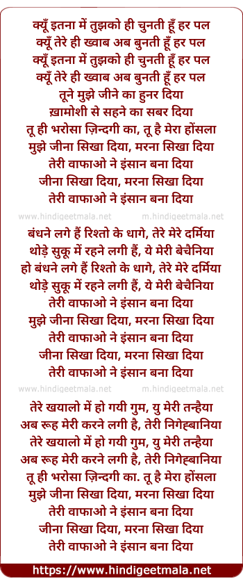 tune mujhe jeene ka hunar diya