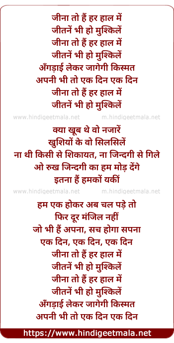 Lyrics of Jina To Hai Har Hal Me - जीना तो हैं हर हाल में
