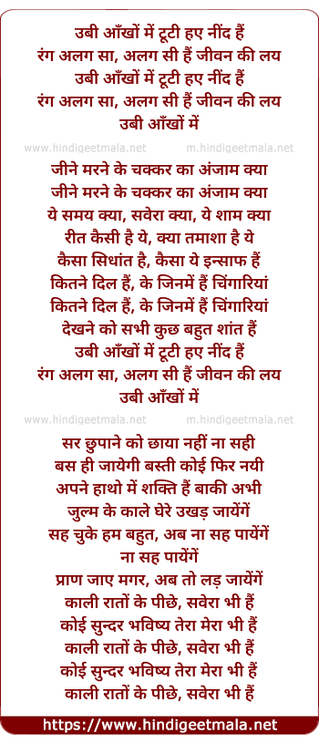ubi aankho me tuti huye neend hain