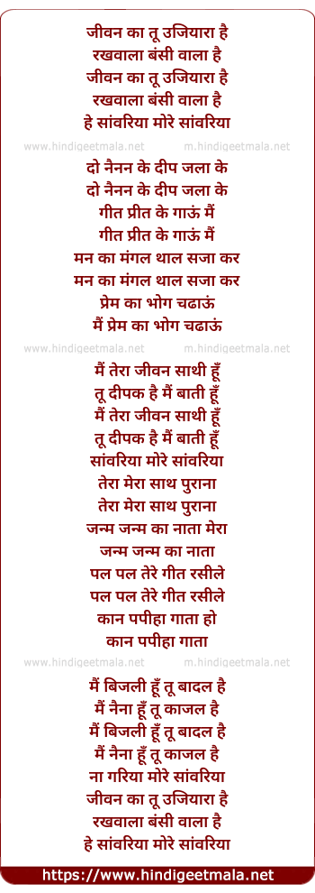 Lyrics of Jeevan Kaa Tu Ujiyara Hai - जीवन का तू उजियारा है