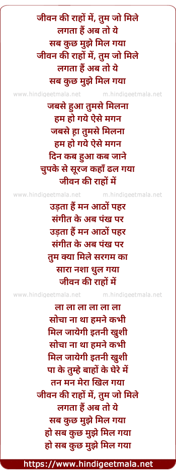 Lyrics of Jeevan Ki Raho Me, Tum Jo Mile - जीवन की राहों में, तुम जो मिले