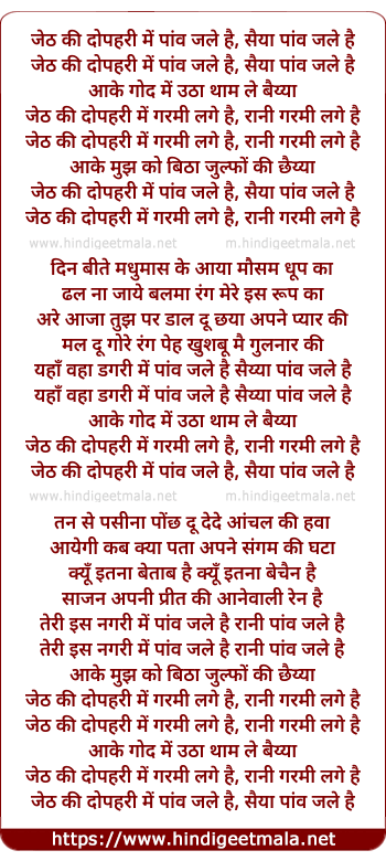 jeth ki dopahari me panv jale hai, saiya panv jale hai