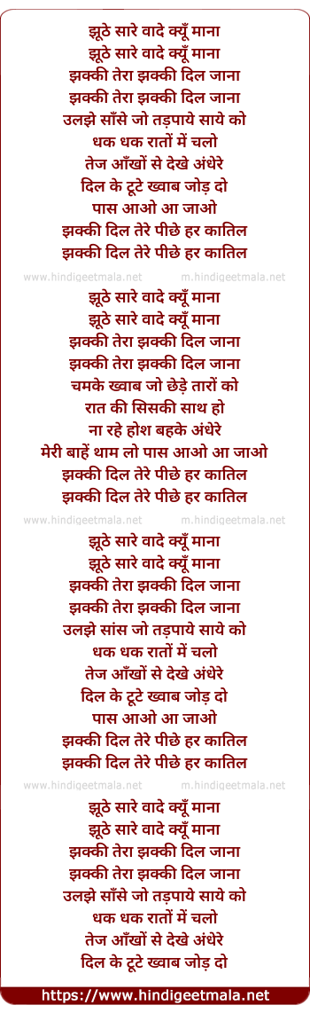 Lyrics of Jhakki Dil Tere Peeche Har Qatil - झक्की दिल तेरे पीछे हर कातिल