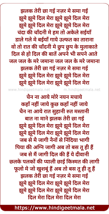 Lyrics of Jhalak Teri Chha Gayi Nazar Me Sama Gayi - झलक तेरी छा गई नज़र मे समा गई