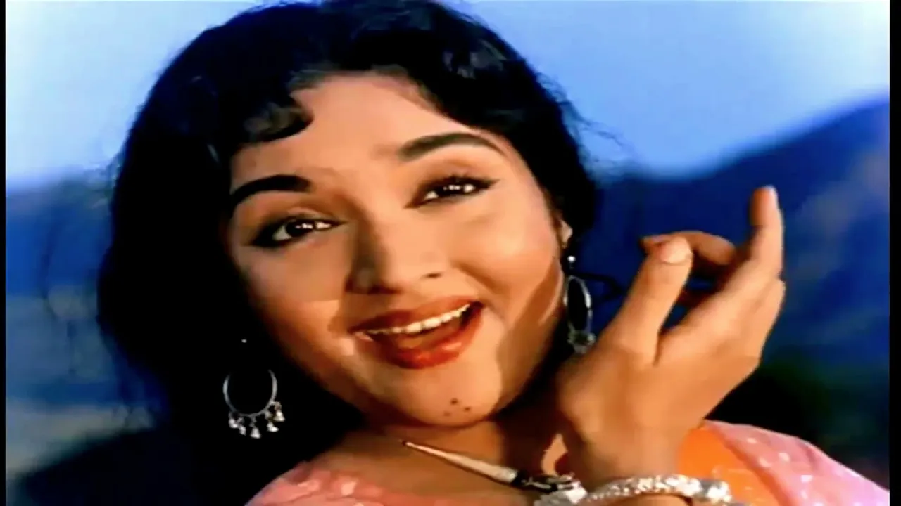 V'malaJi ka dance is a pure treat..! Such grace..!!!!!! Such beauty..!!!!! I have seen this dance 100s of times N every time I see some new moves..! Just watch her wrist movement.. Unki kalaaee ko gaur se dekho ~ ek nasha sa ho jaata hai...! Aur unke pairoon ka kiya kehana...! So lite on her feet. Aisa lagta hain ke zameen khud naach utha hai unke liye..!!